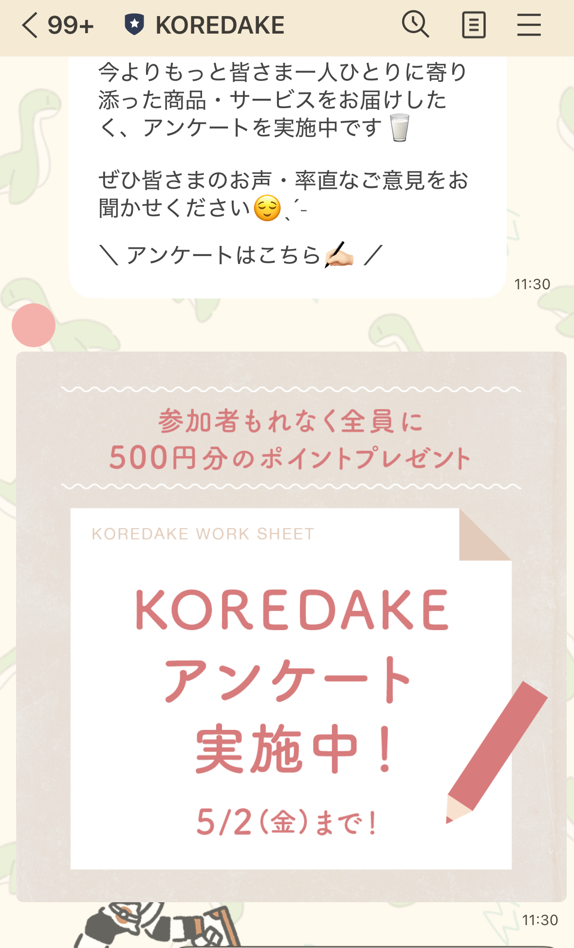 KOREDAKE公式で通年ある友達紹介クーポンは、紹介した人もその友達も使えるかなりお得なクーポン。
